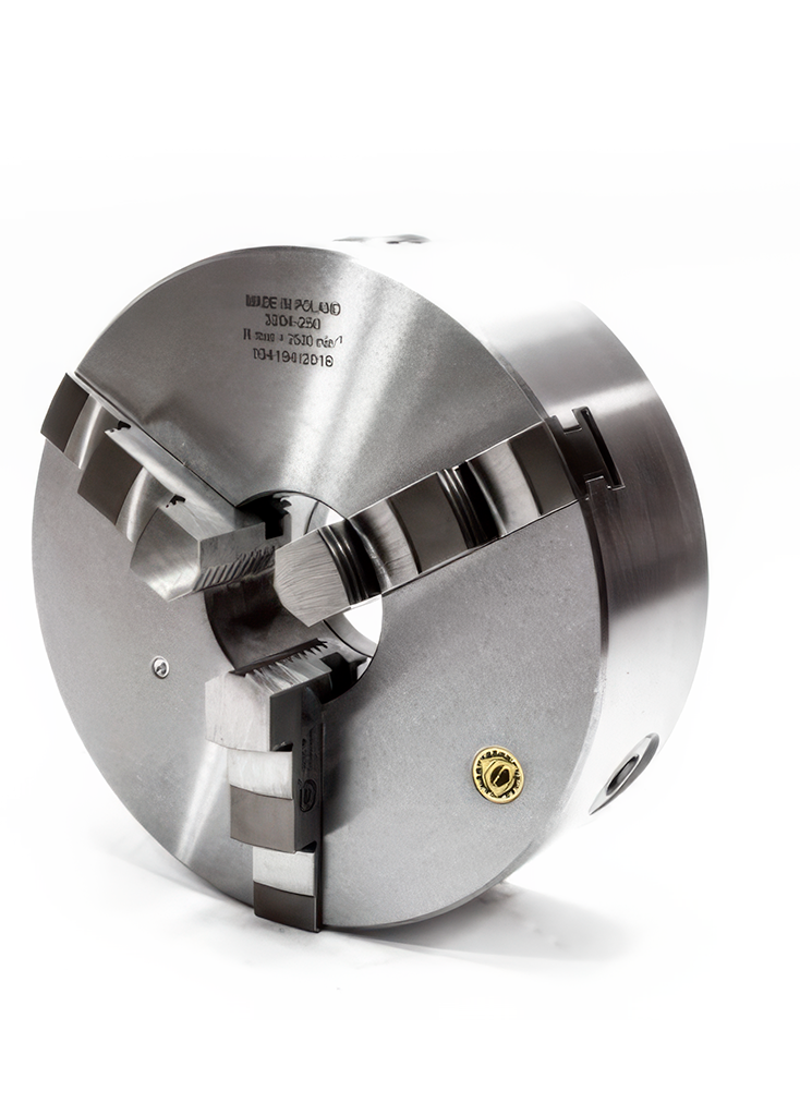 - Uchwyty tokarskie z wymiennymi szczękami – dla elastyczności i precyzji w toczeniu.